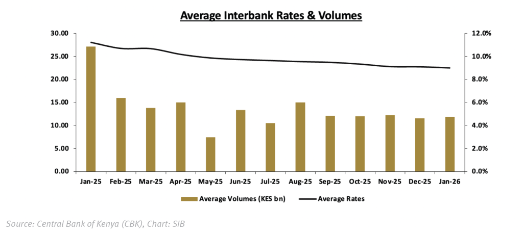 Liquidity conditions remained largely stable in the week, with the Kenya Shilling Overnight Interbank Average (KESONIA) easing by 0.51bps w/w to an average of 8.99%. Interbank lending inched remained steady, with average traded volumes inching higher by 3.3% w/w to KES 12.49bn, from KES 12.09bn in the prior week. The uptick was mirrored by a higher transaction count (+16.67% w/w to 21). Find a summary below: