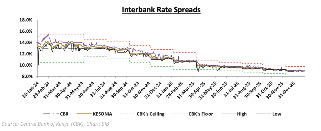 The weighted average interbank rate (KESONIA) continues to track the Central Bank Rate (CBR) closely, underscoring the stability and effectiveness of the monetary policy framework: