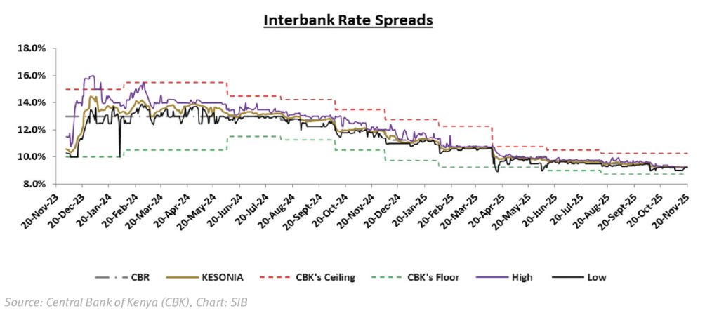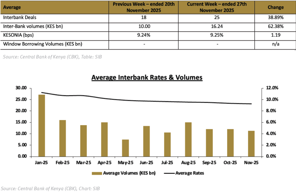 Interbank lending increased during the week, with the average traded volumes jumping by 62.38% w/w to KES 16.24bn, from KES 10.00bn in the prior week. Consequently, the number of interbank deals rose by 38.89% w/w to 25. The Kenya Shilling Overnight Interbank Average (KESONIA) notched higher (+1.19bps w/w) to an average of 9.25%, as liquidity tightened slightly during the week. However, no actor utilized the CBK borrowing window in the week. Key to note is that the banking sector will implement a new regime for interest rate determination based on KESONIA and premium (K) through the revised risk-based pricing model starting from
