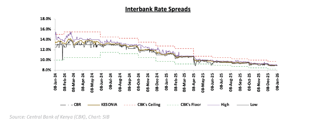 The weighted average interbank rate (KESONIA) continues to track the Central Bank Rate (CBR) closely, underscoring the stability and effectiveness of the monetary policy framework: