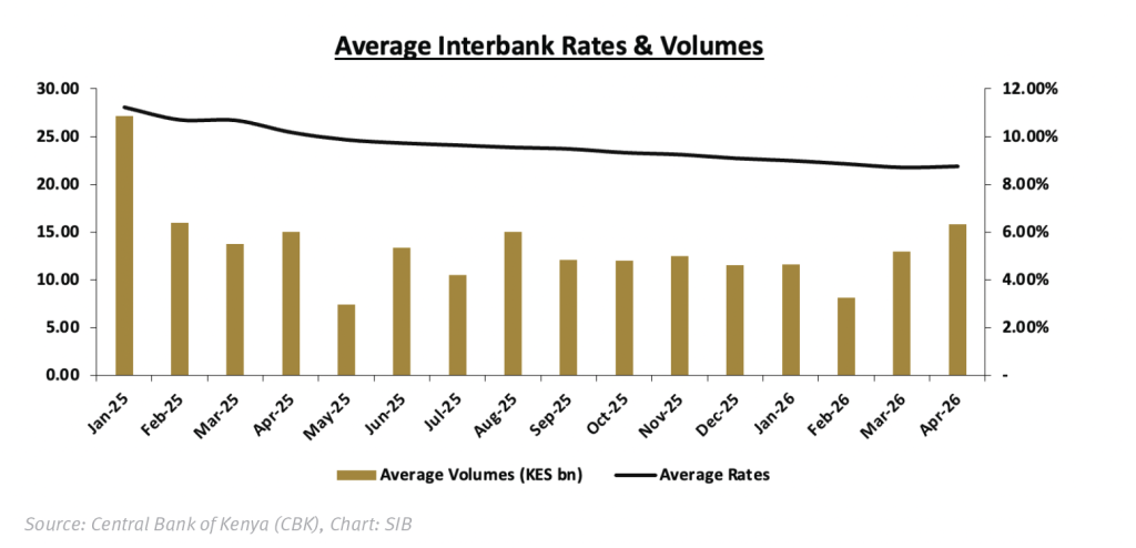 The weighted average interbank rate (KESONIA) continues to track the Central Bank Rate (CBR) closely, underscoring the stability and effectiveness of the monetary policy framework: